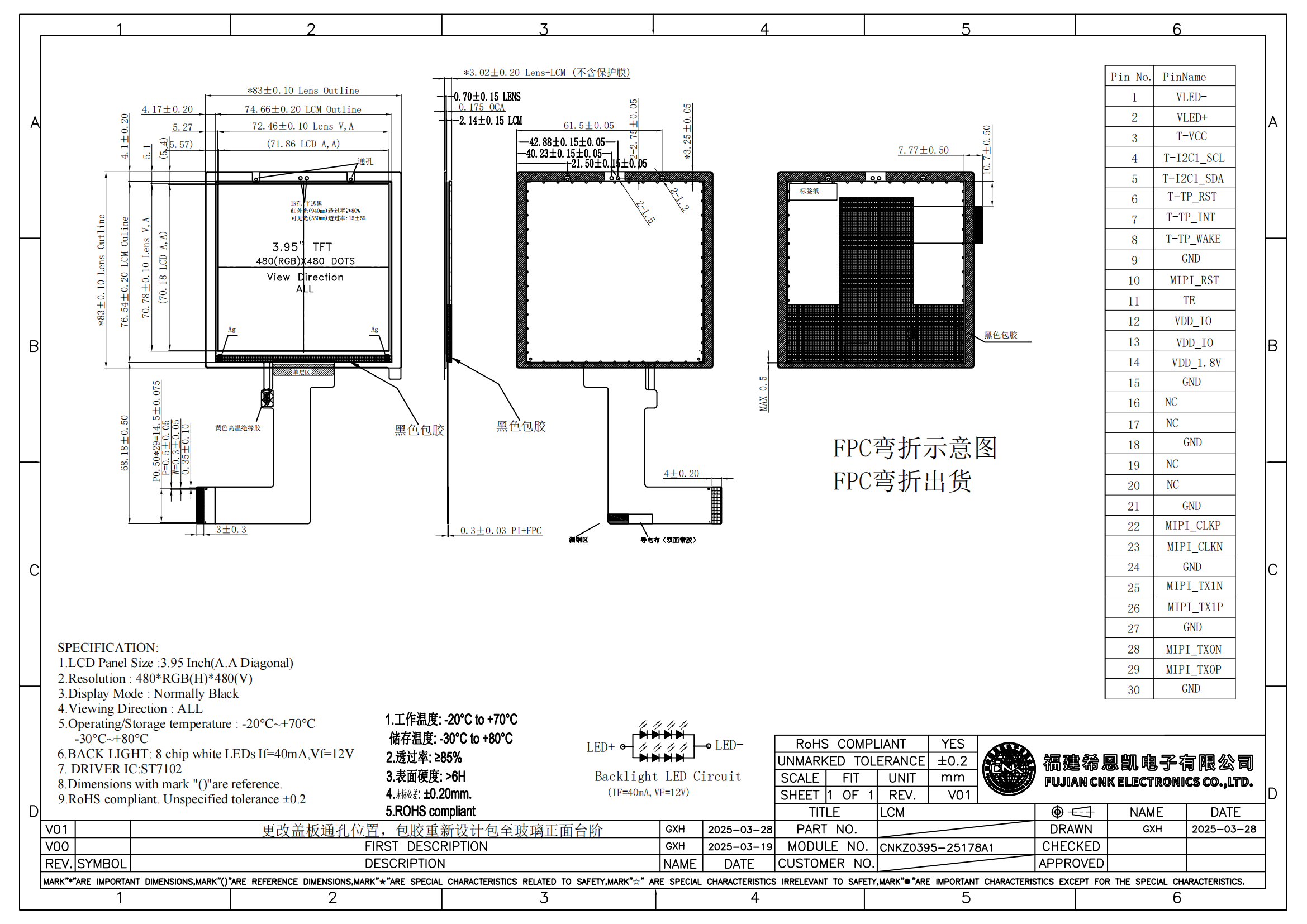 | Mitat | 74,66 * 76,54 mm | Katselukulma | Täysi katselukulma |