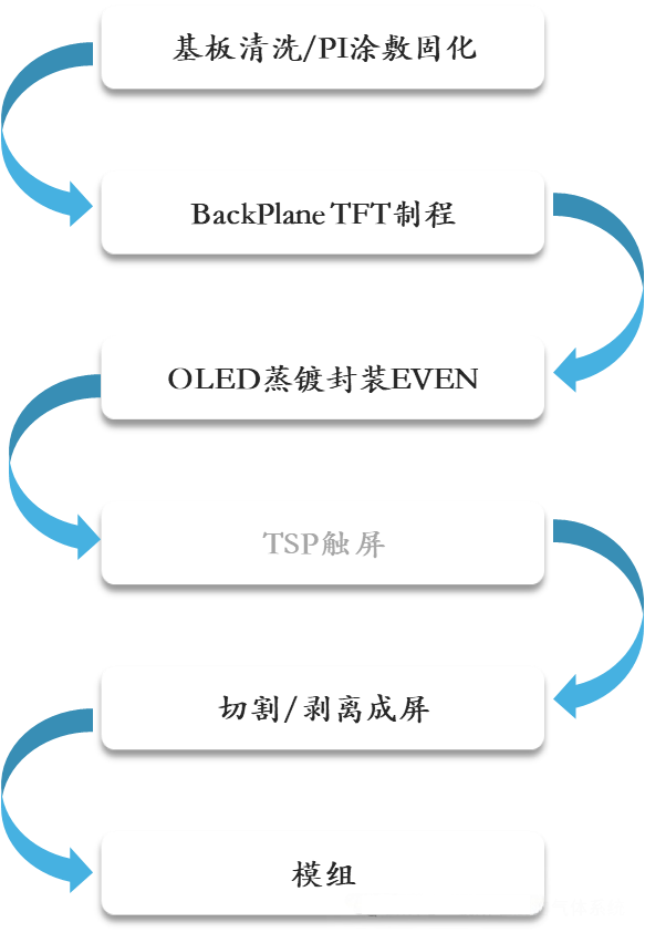 Joustava AMOLED-valmistusprosessi sisältää avainvaiheet, kuten alustan puhdistuksen/PI-pinnoituksen, taustalevyn TFT-valmistelun, OLED-haihduttamisen ja kapseloinnin, kosketusmoduulin integroinnin, laserin nostamisen ja moduulin kokoamisen.