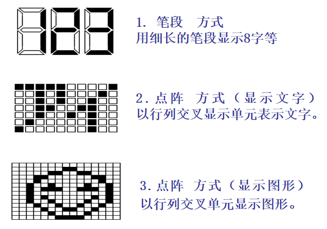 Segmentin näytöt:Yksinkertaisten ja edullisien ominaisuuksiensa ansiosta ne ovat erikoistuneet numeroiden, kirjainten tai yksinkertaisten kuvakkeiden näyttämiseen. Ne ovat klassinen valinta laitteille, kuten mittalaitteille ja kodin peruskoneille.