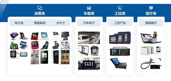 Yhtiön tuotelinja on keskittynyt kolmeen pääsuuntaan: yksiväriset LCD-näytöt, värilliset TFT-näytöt ja HMI-ihmisen ja koneen vuorovaikutusmoduulit. 。 Niistä värilliset TFT-näytöt ovat tällä hetkellä myynninedistämisen pääpaino, ja niitä käytetään laajalti ajoneuvojen näytöissä, teollisessa ohjauksessa, älykodissa, lääketieteellisissä laitteissa ja muilla aloilla.